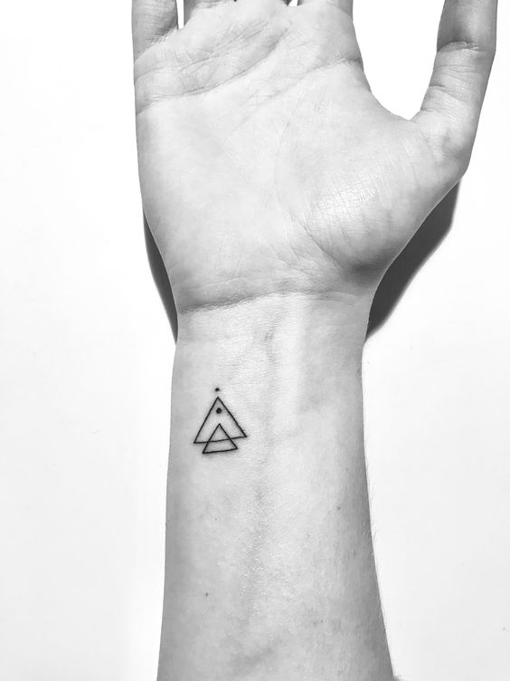 Secondly, let’s delve into the symbolism. Triangles represent a variety of concepts from different cultures. Therefore, a small triangle tattoo can remind you daily of your own beliefs or aspirations.