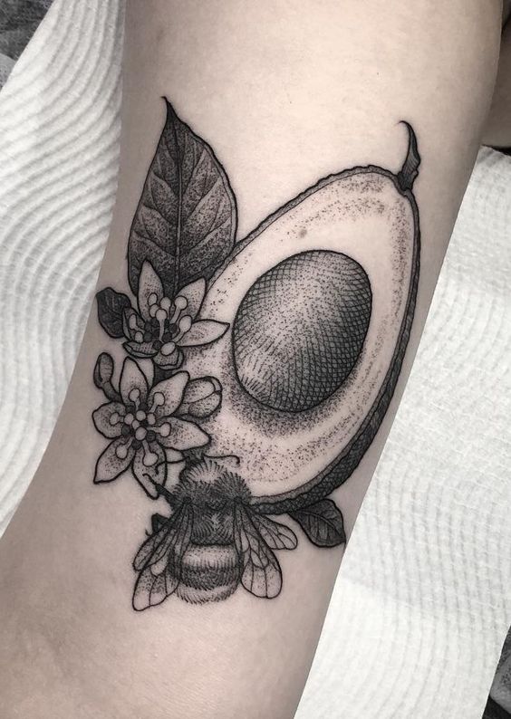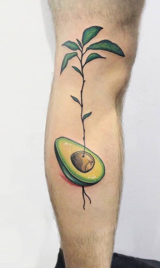 Another piece features an avocado tree, its roots and branches intricately detailed. This tattoo represents growth and connection to nature. Then there’s a minimalistic avocado outline, perfect for those who love subtle art. Its simplicity speaks volumes.