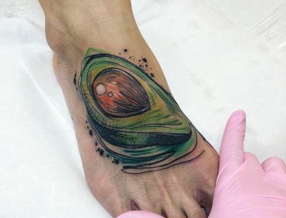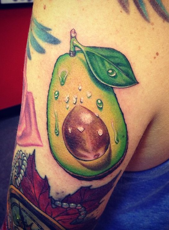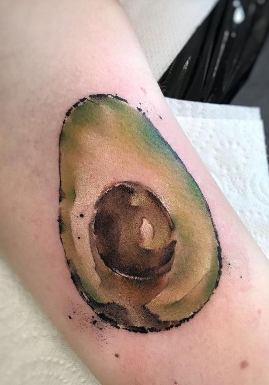 We can’t forget the cute, tiny avocado tattoo, perfect for an understated yet charming look. Lastly, there’s a realistic avocado, its texture and shading so precise, it looks edible.