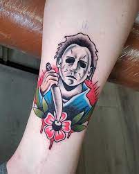Additionally, traditional Michael Myers tattoos are a bold choice, a declaration of fandom. They unite lovers of horror with a glance. Moreover, the tattoos themselves are conversation starters, igniting tales of first frights and movie marathons. Admirers of these tattoos share a bond as strong as the ink in their skin.