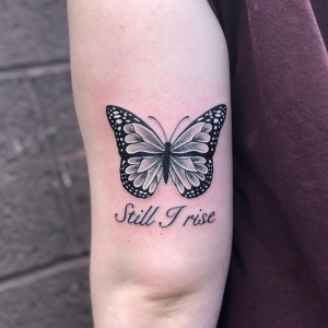 The Still I Rise butterfly tattoo merges powerful symbolism with exquisite beauty. It represents resilience, transformation, and the spirit of overcoming adversity. This tattoo draws inspiration from the transformative journey of a butterfly. It also echoes Maya Angelou’s famous poem, “Still I Rise,” a testament to enduring strength.