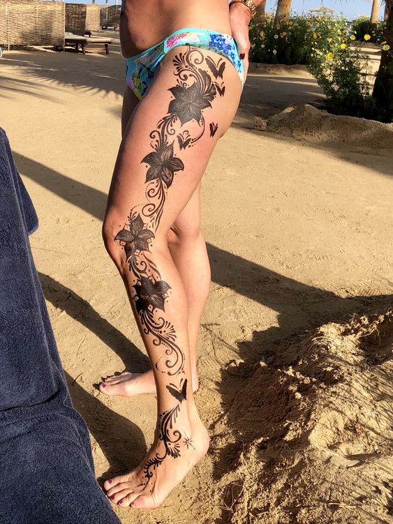 Imagine a tattoo that wraps around your leg like a floral vine. It symbolizes growth and beauty, perfect for nature lovers. Also, consider an intricate mandala design, representing harmony and balance. These tattoos are not just gorgeous; they’re meaningful.
