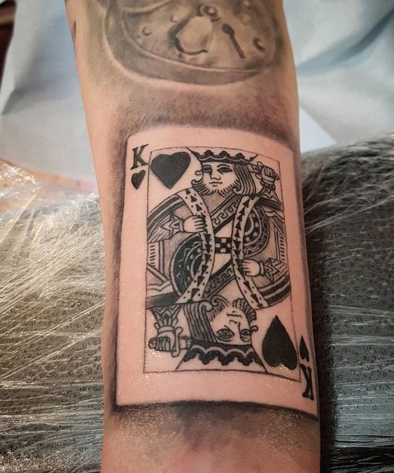 Forearm king of hearts tattoos resonate with a wide audience. They’re popular among both card players and those who appreciate the symbolism of the heart. The design transcends cultural boundaries and appeals to people from all walks of life.