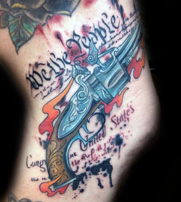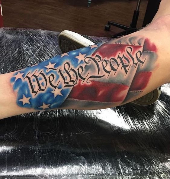 These tattoos boast a wide array of designs. While some display the bold words ‘We the People’ in the iconic script of the Constitution, others innovate by incorporating flags, eagles, or dog tags. Hence, they stand as visual tributes to service, impressing personal histories onto the canvas of skin.